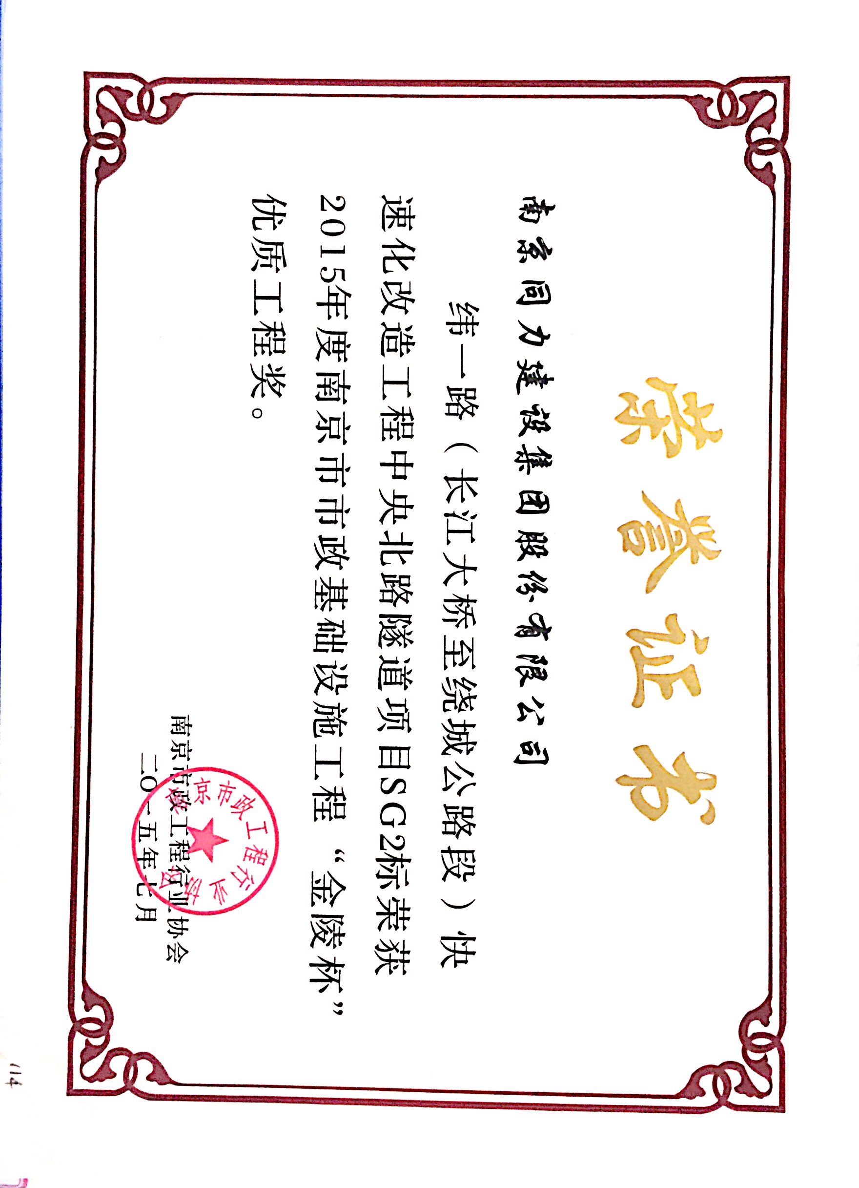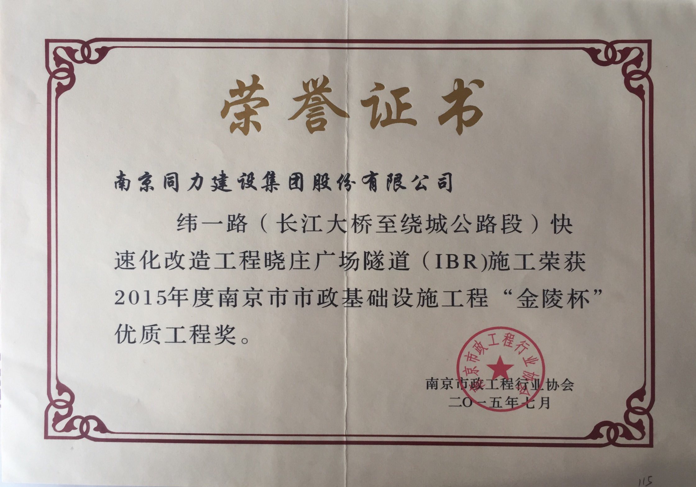 中央北路隧道項目工程獲得“金陵杯”優(yōu)質(zhì)...