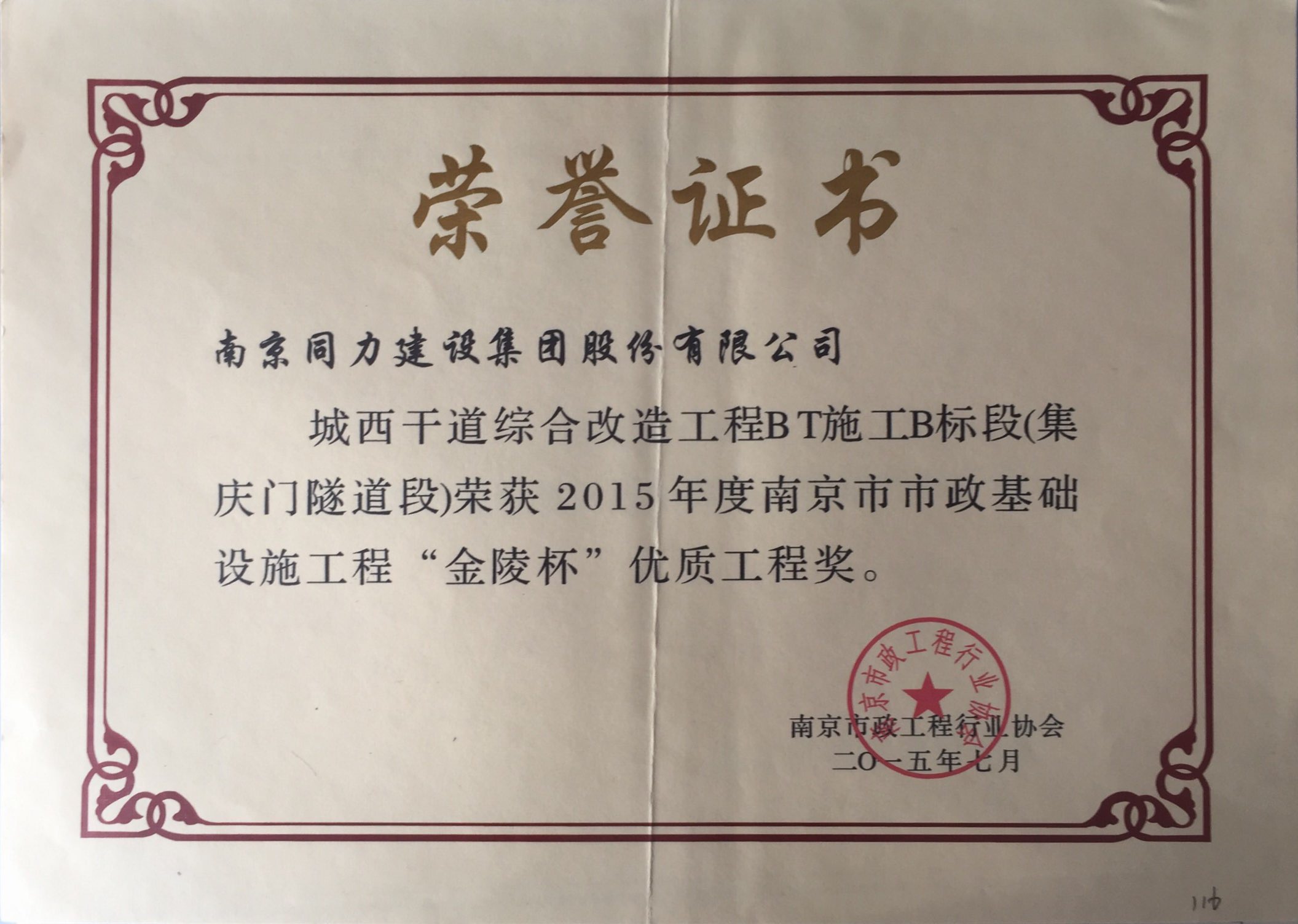 集慶門隧道項目工程獲得“金陵杯”優(yōu)質(zhì)工...