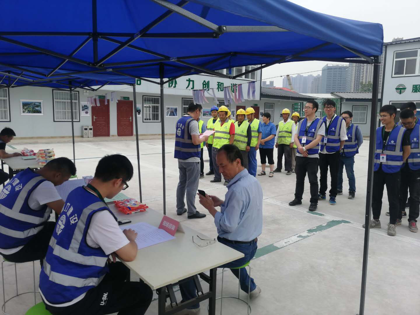 ★施工人員排隊(duì)參與現(xiàn)場(chǎng)宣傳活動(dòng)