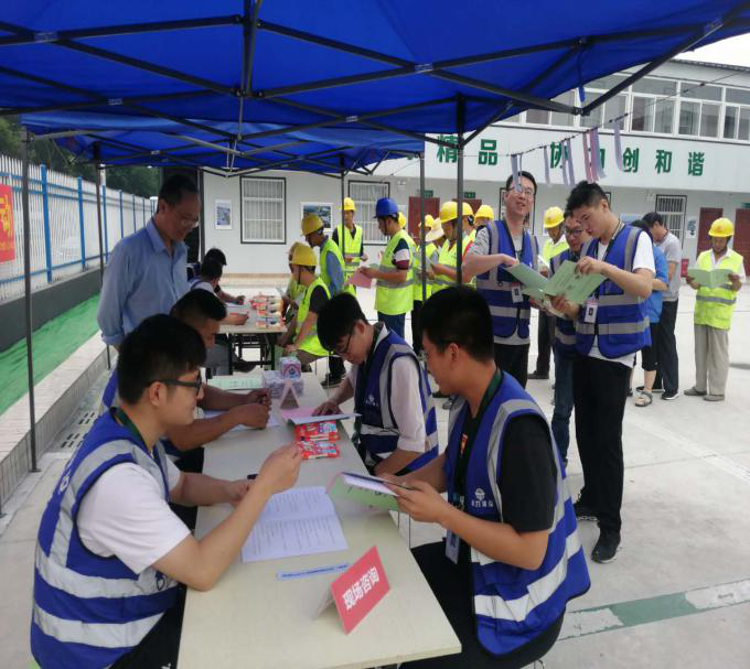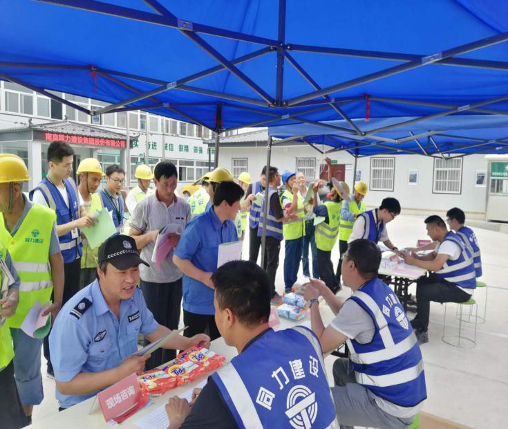 南京同力建設(shè)集團(tuán)股份有限公司南京地鐵5號(hào)線土建施工TA07-2標(biāo)項(xiàng)目部舉辦以 “防風(fēng)險(xiǎn)、除隱患、遏事故”為主題的2019年“安全生產(chǎn)月”宣傳咨詢?nèi)栈顒?dòng),在全項(xiàng)目部唱響“安全生產(chǎn)”的主旋律,牢固樹(shù)立“安全第一、預(yù)防為主、綜合治理”的安全生產(chǎn)方針。