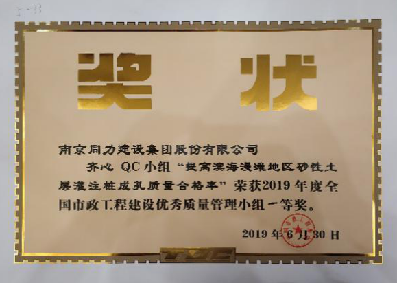 本次發(fā)布會上,同力建設參賽的兩項QC成果均來自項目施工一線,成果質(zhì)量水平較高,經(jīng)過激烈角逐,同力人QC小組的《降低風化巖層三重管高壓旋噴樁水泥損耗率》和齊心QC小組的《提高濱海漫灘地區(qū)砂性土層灌注樁成孔一次驗收合格率》均榮獲一等獎,同力建設憑借多年來在QC小組活動中的突出成績和表現(xiàn),再次榮獲“2019年度全國市政工程建設QC小組活動優(yōu)秀企業(yè)”稱號,徐慶平獲得“2019年度全國市政工程建設QC小組活動優(yōu)秀推進者”,此次再獲大獎是對同力建設多年來QC小組活動成績的一種肯定,更激勵同力人繼續(xù)努力開展QC小組活動。