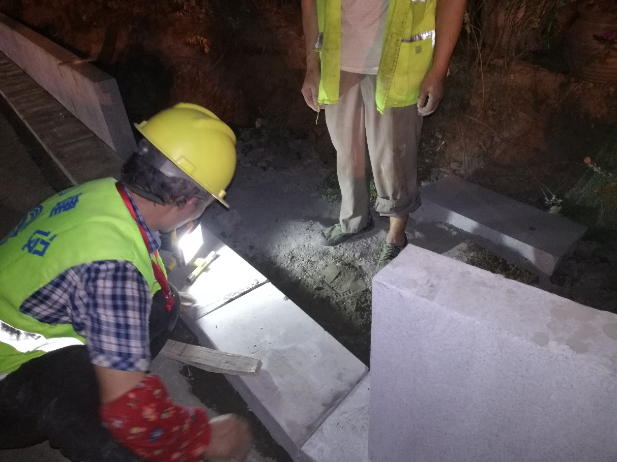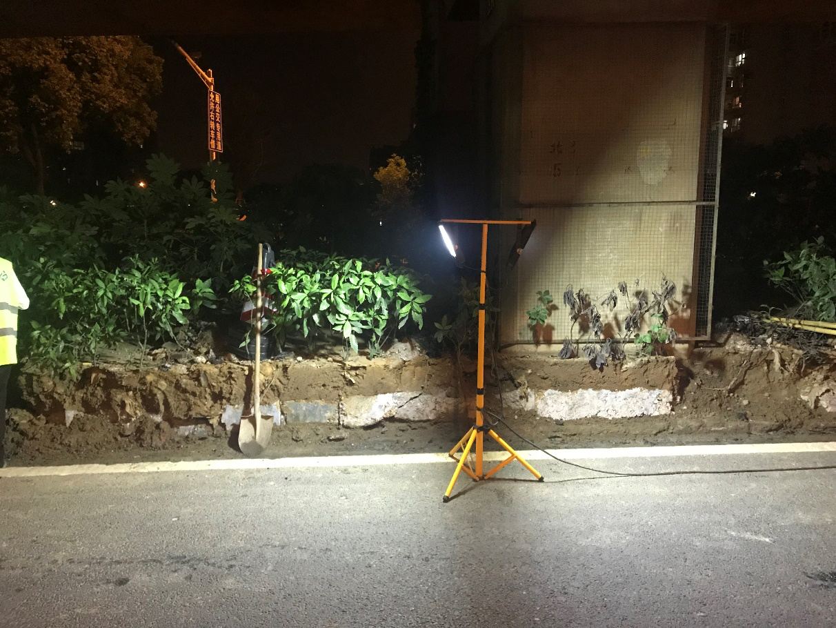 開(kāi)工后外部條件復(fù)雜,名城會(huì)、中高考護(hù)考、梅雨等都大大影響了工期。開(kāi)保工至今幾乎有2\3的時(shí)間無(wú)法正常施工。針對(duì)護(hù)考、重要活動(dòng)保供節(jié)點(diǎn)等特殊時(shí)段,正一方面多方協(xié)調(diào),盡可能爭(zhēng)取相對(duì)寬松的外部條件;一方面果斷調(diào)整工序,在禁運(yùn)禁噪前夕組織加大力量集中實(shí)施產(chǎn)生道大量渣土和噪音的側(cè)平石拆除作業(yè),并用圍擋密圍占住原側(cè)平石區(qū)域防止土方流失。確保了在護(hù)考時(shí)期可以只施工路緣石鋪貼等不產(chǎn)生噪音的工序。同時(shí)為了切實(shí)在護(hù)考期間將噪音降至最低,經(jīng)過(guò)調(diào)研,項(xiàng)目部給各作業(yè)班組更換采用太陽(yáng)能充電鋰電池LED燈等新型照明設(shè)備。這類新設(shè)備價(jià)格不貴,又不用燃油發(fā)動(dòng)機(jī)提供電能,不僅解決了燃油發(fā)動(dòng)機(jī)的噪音問(wèn)題,同時(shí)移動(dòng)便利也方便了施工。